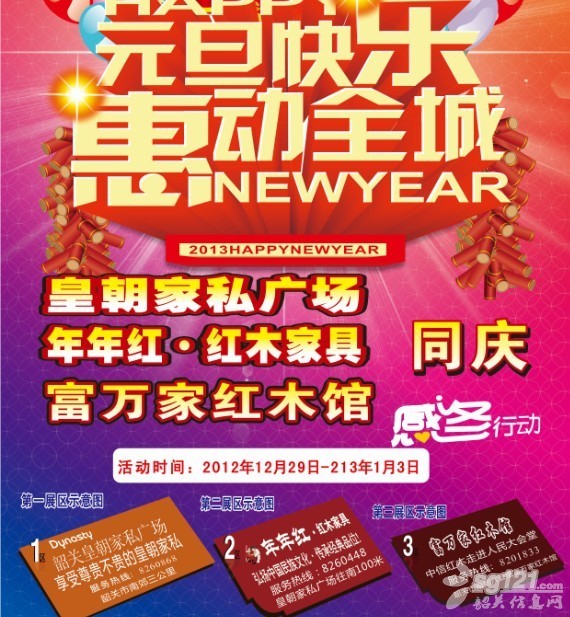 正文摘要:元旦快樂 惠動(dòng)全城 皇朝家私廣場(chǎng) 年年紅.紅木家具 富萬家紅木館 三店同慶 活動(dòng)時(shí)間:2012年12月29日--2013年1月3日 |