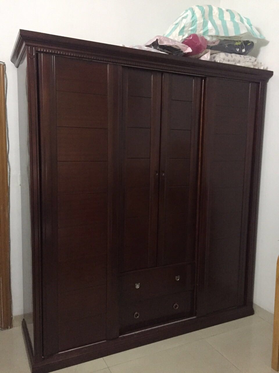 8、9成新,四門兩個大抽屜,1.8米寬,2米高的實木大衣柜